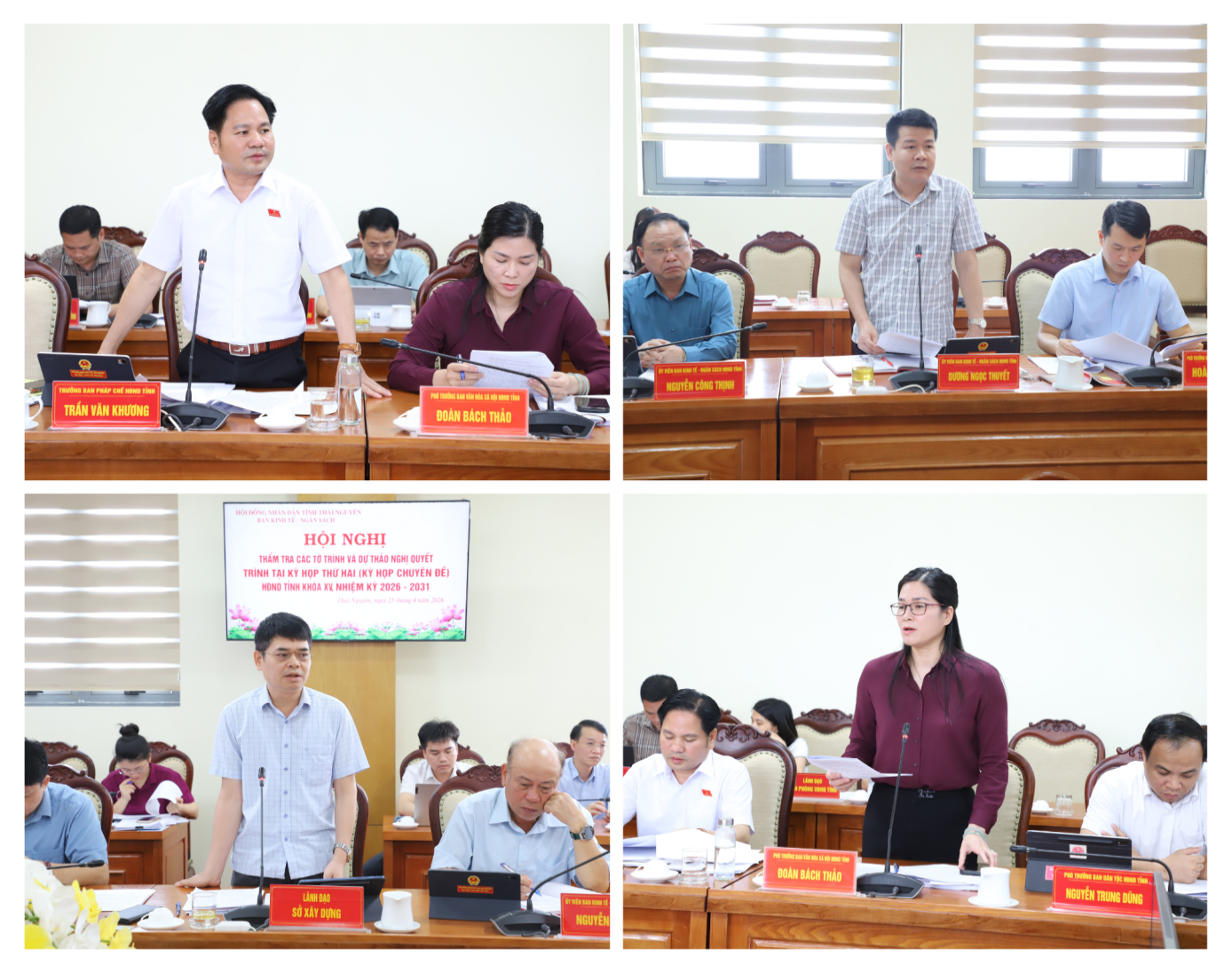 Ban Kinh tế - Ngân sách chủ trì thẩm tra đối với 06 nội dung Tờ trình, dự thảo Nghị quyết gồm: Tờ trình, dự thảo Nghị quyết quy định nguyên tắc, tiêu chí, định mức phân bổ vốn đầu tư công nguồn ngân sách địa phương giai đoạn 2026 - 2030 tỉnh Thái Nguyên; Tờ trình, dự thảo Nghị quyết điều chỉnh, bổ dung danh mục các khu đất thực hiện đấu thầu lựa chọn nhà đầu tư thực hiện dự án đầu tư có sử dụng đất trên địa bàn tỉnh Thái Nguyên; Tờ trình, dự thảo Nghị quyết sửa đổi, bổ sung Nghị quyết chủ trương đầu tư Chương trình Hỗ trợ đầu tư, cải tạo, nâng cấp hạ tầng giao thông các xã vùng khó khăn và đặc biệt khó khăn tỉnh Thái Nguyên giai đoạn 2026 - 2030; Tờ trình về việc đề nghị quyết định chủ trương chuyển mục đích sử dụng rừng sang mục đích khác trên địa bàn tỉnh Thái Nguyên; Tờ trình, dự thảo Nghị quyết về chủ trương đầu tư dự án Tuyến đường liên kết, kết nối tỉnh Thái Nguyên, tỉnh Tuyên Quang (đoạn từ Km11+500 ĐT.261 đến giáp ranh địa phận tỉnh Tuyên Quang); Tờ trình, dự thảo Nghị quyết thông qua bổ sung danh mục dự án phải thu hồi đất trên địa bàn tỉnh Thái Nguyên
