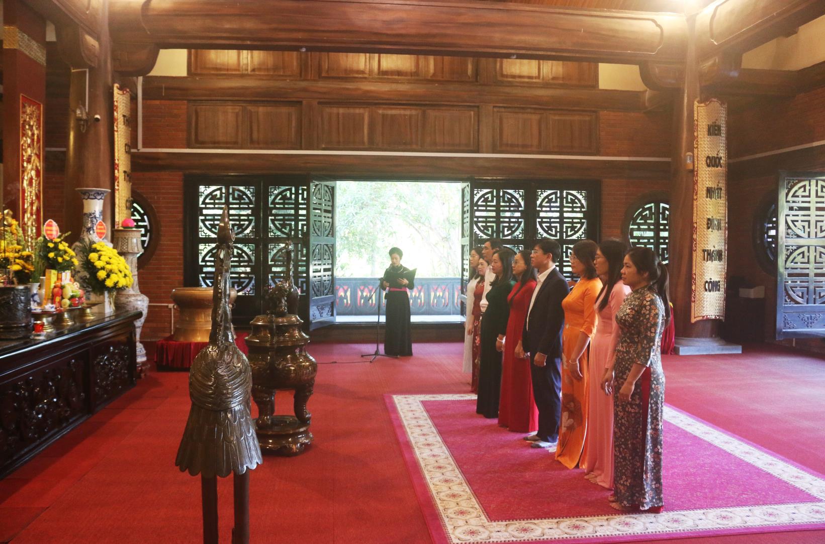 Trong không khí trang nghiêm tại Nhà tưởng niệm Chủ tịch Hồ Chí Minh trên đỉnh Đèo De, thuộc xóm Tỉn Keo, xã Phú Đình, Đoàn thành kính tưởng nhớ Chủ tịch Hồ Chí Minh - vị lãnh tụ kính yêu của dân tộc Việt Nam.
