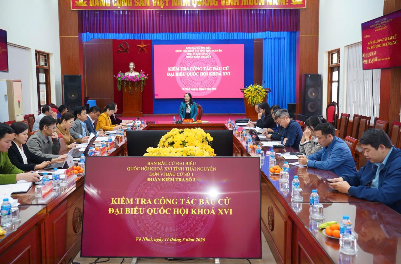 Ngày 11/3/2026, Đơn vị số 01 - Ban bầu cử đại biểu Quốc hội khóa XVI tỉnh Thái Nguyên khóa XVI (Đoàn số 3) đã kiểm tra công tác bầu cử tại xã Võ Nhai, Dân Tiến, Tràng Xá, Nghinh Tường, Thần Sa, La Hiên, Sảng Mộc. Đoàn do đồng chí Đoàn Thị Hảo, Phó Trưởng Đoàn phụ trách Đoàn đại biểu Quốc hội tỉnh làm Trưởng đoàn.