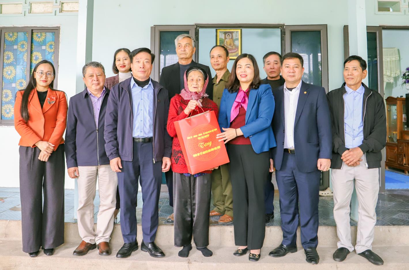 Đoàn thăm, tặng quà gia đình bà Nguyễn Thị Phong, là vợ liệt sĩ Phạm Ngọc Lan, thường trú TDP Tân Lập