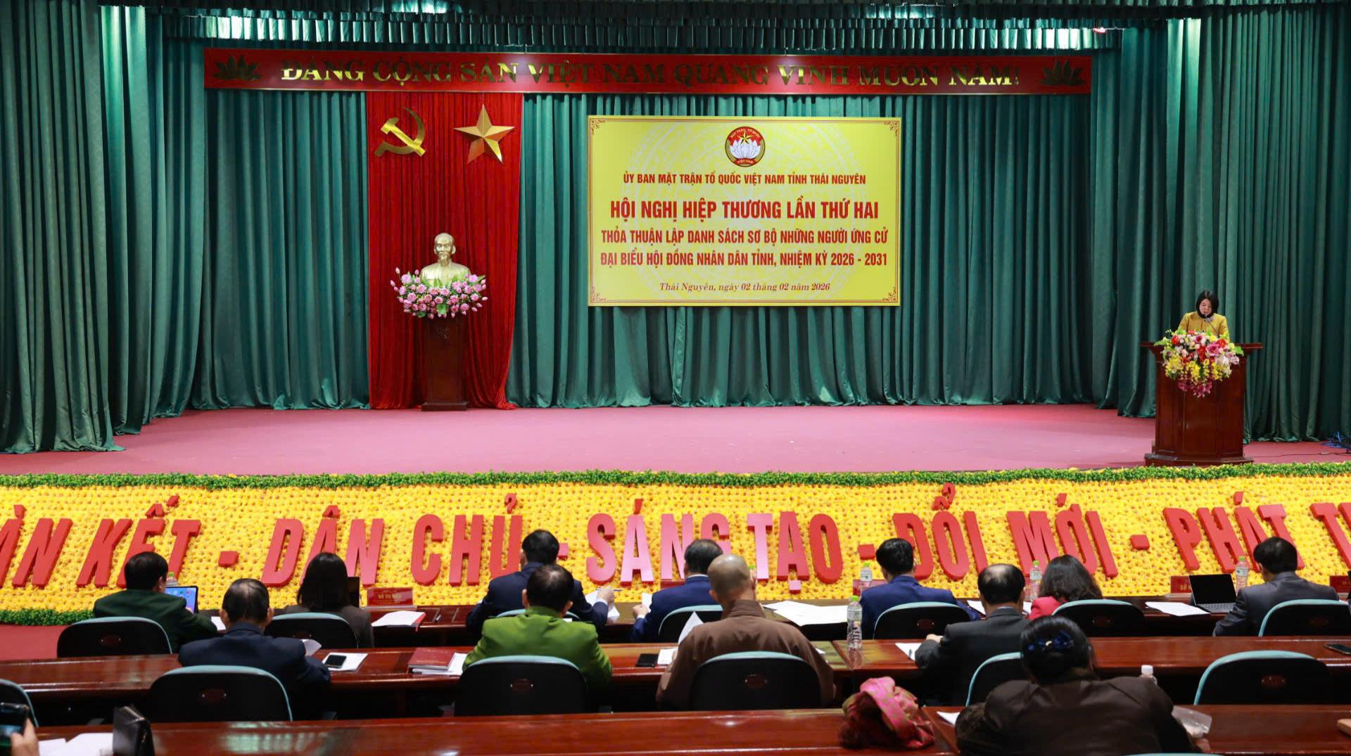 Hội nghị hiệp thương lần thứ hai thỏa thuận lập danh sách sơ bộ những người ứng cử đại biểu Quốc hội khóa XVI và đại biểu Hội đồng nhân dân tỉnh Thái Nguyên nhiệm kỳ 2026 - 2031