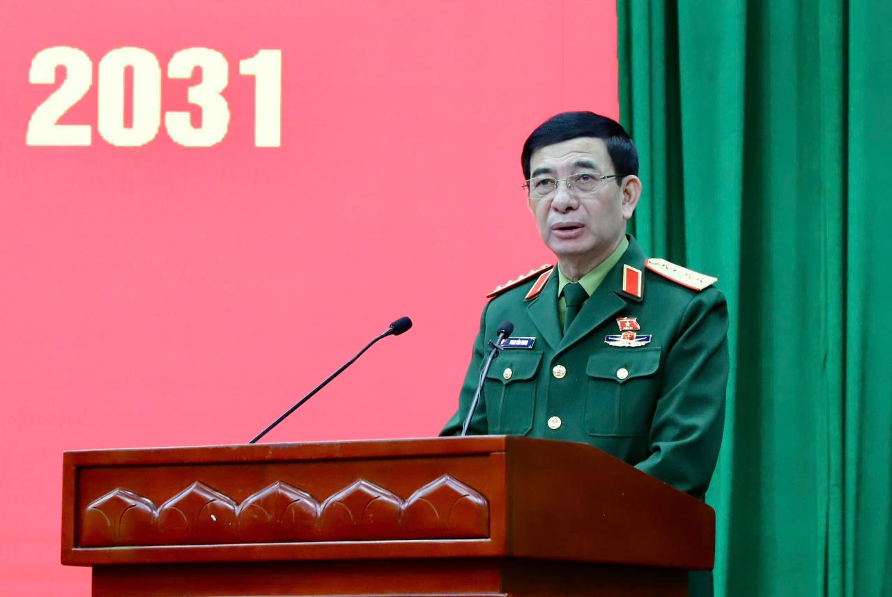 Đồng chí Phan Văn Giang, Ủy viên Bộ Chính trị, Ủy viên BTV Đảng ủy Chính phủ, Phó Bí thư Quân ủy Trung ương, Đại tướng, Bộ trưởng Bộ Quốc phòng phát biểu tại hội nghị TXCT vận động bầu cử tại đơn vị bầu cử số 01