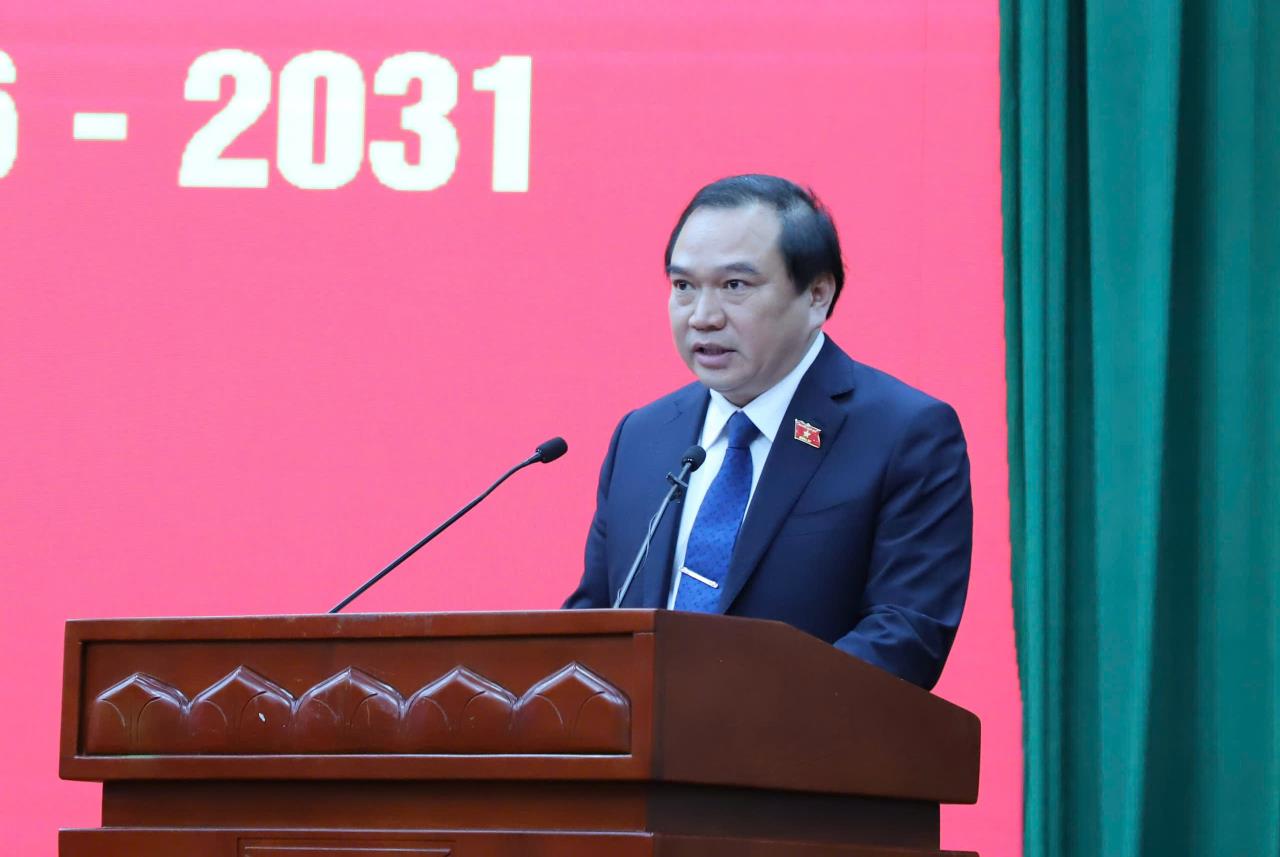 Đồng chí Hà Sỹ Huân, Ủy viên BCH Đảng bộ tỉnh, Ủy viên Ủy ban Kinh tế - Tài chính của Quốc hội, Ủy viên BCH Đảng bộ HĐND tỉnh, Phó Trưởng Đoàn ĐBQH chuyên trách tỉnh phát biểu tại hội nghị tiếp xúc cử tri vận động bầu cử tại xã Chợ Rã, tỉnh Thái Nguyên