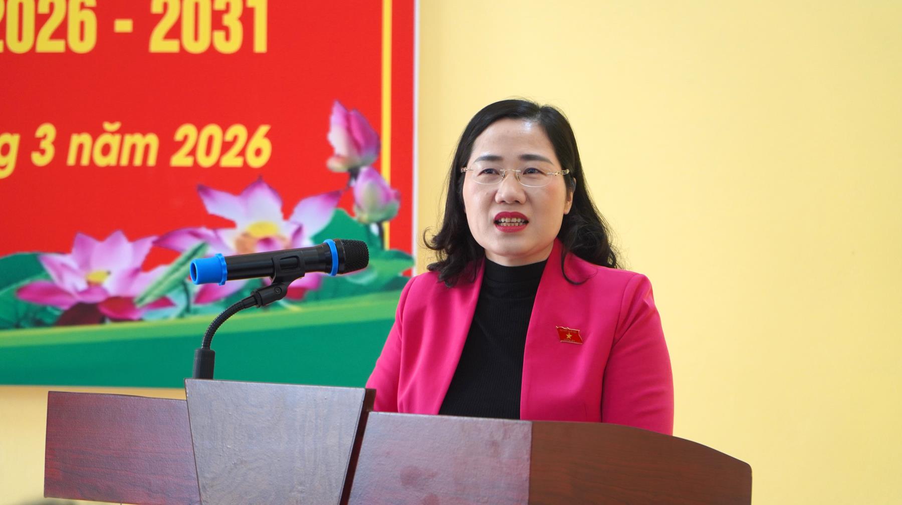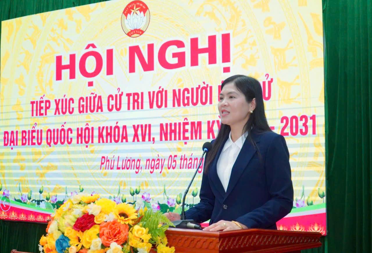 Đồng chí Phạm Thị Thu Thủy, Ủy viên BCH Đảng bộ tỉnh, Ủy viên BCH Đảng bộ CCQ Đảng tỉnh, Ủy viên BCH Đảng bộ HĐND tỉnh, Trưởng ban chuyên trách Ban Văn hóa- Xã hội HĐND tỉnh trình bày chương trình hành động trước cử tri xã Phú Lương, tỉnh Thái Nguyên