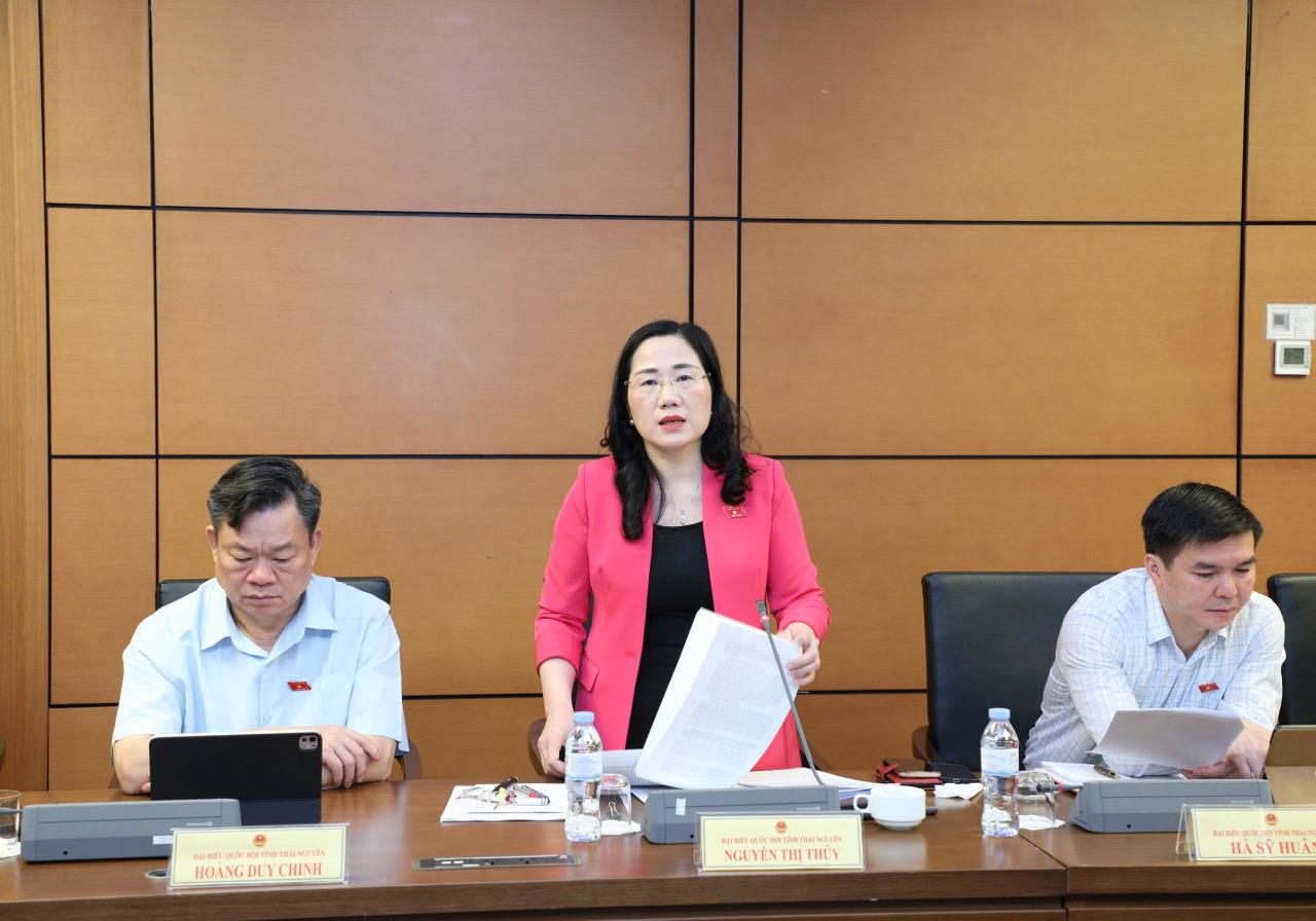 Đại biểu Nguyễn Thị Thủy, Phó Chủ nhiệm Uỷ ban Tư pháp của Quốc hội, Đoàn ĐBQH tỉnh Thái Nguyên tham gia thảo luận