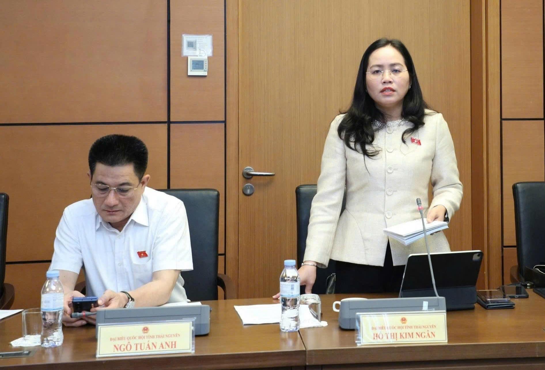 Đại biểu Hồ Thị Kim Ngân, Ủy viên BCH Đảng bộ tỉnh, Bí thư Đảng ủy, Chủ tịch HĐND phường Đức Xuân - Đoàn ĐBQH tỉnh Thái Nguyên tham gia thảo luận