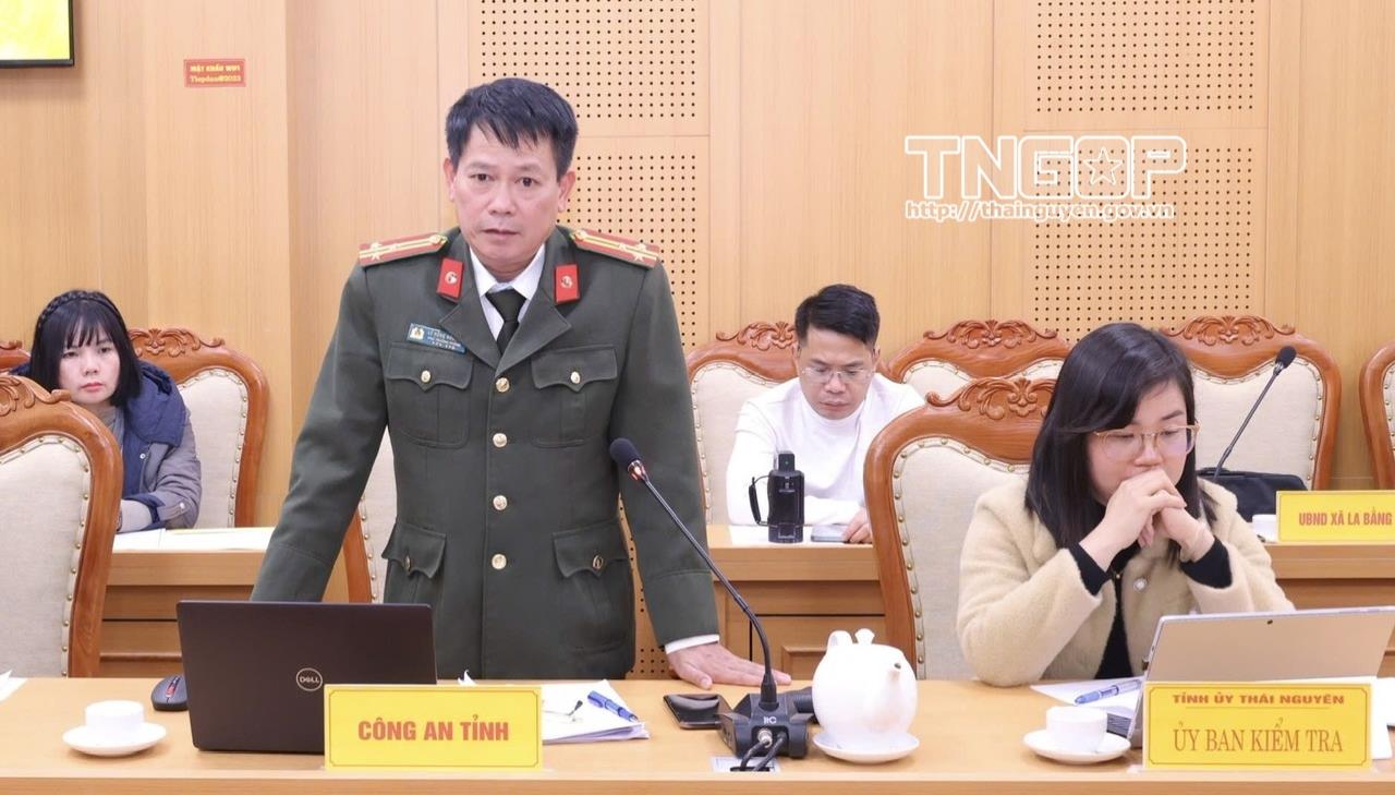 Đại diện Công an tỉnh phát biểu ý kiến tại hội nghị đối thoại với công dân